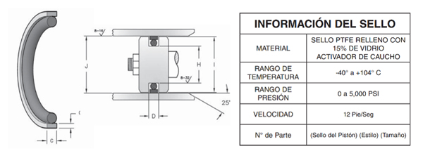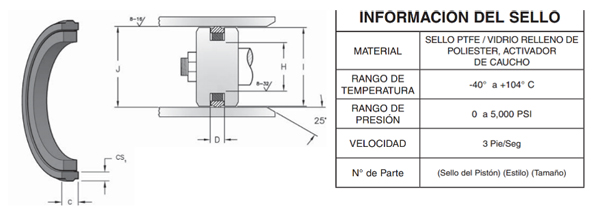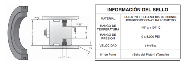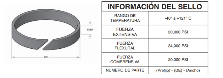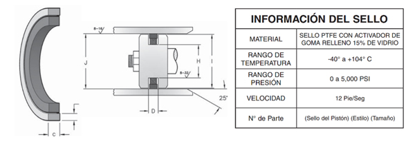 El material de este sello presenta un elevado nivel de memoria y se estira sobre el pistón y se ajusta a la ranura para un ensamble inmediato. Los sellos también ofrecen resistencia a la extrusión, la elevada abrasión y baja fricción, lo cual ayuda a reducir el daño del ensamble.