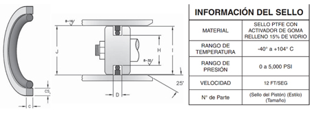El estilo PS1800 ofrece un sellado de pistones de alta resistencia y baja fricción. El PS1800 también ofrece un sello para pistón de doble acción con un diseño compacto que cumple los requisitos de la norma ANSI/B93-32-1973. NOTA: