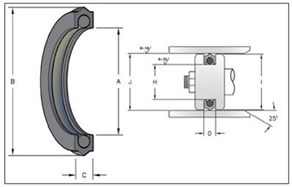 Diseñados para pistones de una o dos piezas, estos sellos para pistón tienen un sello de nitrilo para lograr una sellabilidad elevada, respaldos divididos de nylon para ofrecer resistencia a la extrusión y dos anillos de rodamiento dividido.